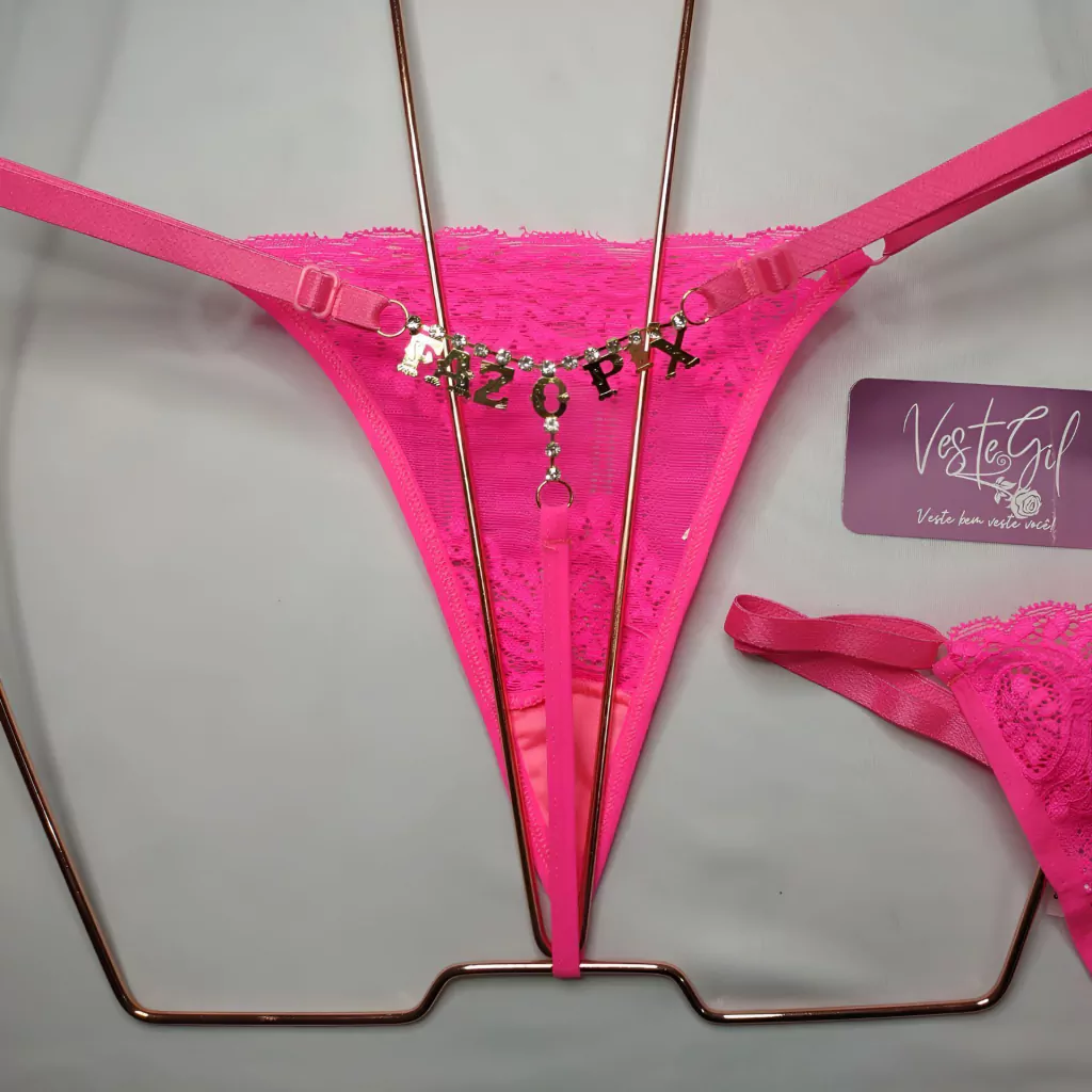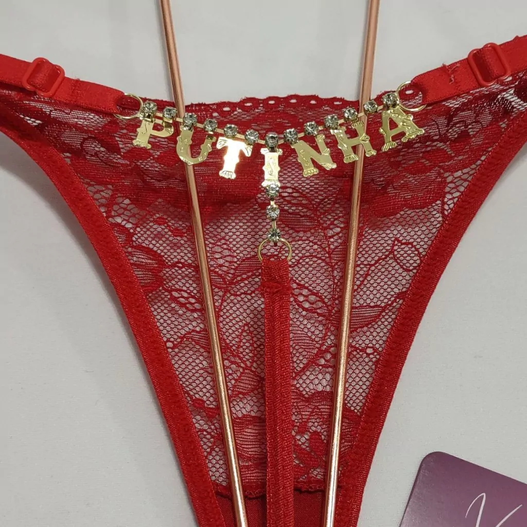 Pensado e feita para um momento íntimo do casal, a Calcinha com Frase é ótima para esse momento, com regulagem rendada totalmente fio, com frases em Strass pedraria, muito bem feita, surpreenda seu amor usando uma, dando suas indiretas para hora H.